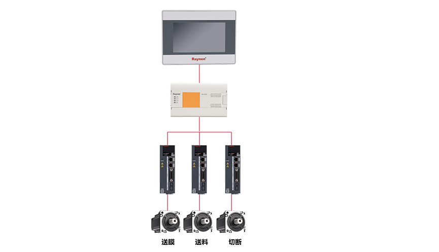睿能X5系列PLC帶有電子齒輪功能,可實(shí)現(xiàn)多軸同步運(yùn)行;同時(shí)自帶旋切功能快,可方便實(shí)現(xiàn)定長切割,并保證切割精度。