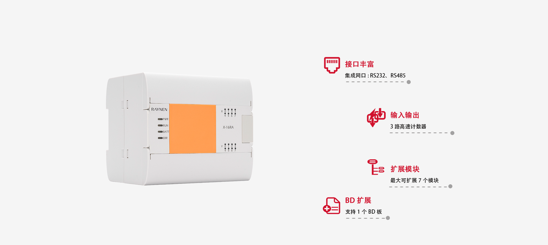 ▲ 支持一個(gè)BD 擴(kuò)展板,最大可擴(kuò)展7 個(gè)模塊。
